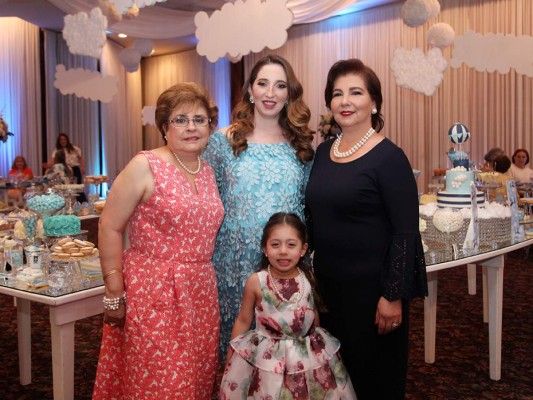 La grata noticia fue motivo para que un grupo de amigas y familiares se unieran y le organizarán un encuentro especial bajo el tema de aviones, donde abundaron las figuras de globos aeróestaticos, nubes y masivos arreglos con rosas, hortensias, gladiolas y lirios.