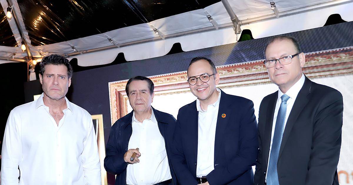 Banco de Occidente celebró con gran éxito la séptima edición de Fuego & Barrica 2025. Bajo el concepto “Entre humo y minería: raíces profundas de nuestra tierra”, la actividad rindió homenaje a los legados que han forjado la identidad nacional: la herencia minera, la elegancia del humo y la imponencia de los destilados. La noche invitó a los asistentes a adentrarse en un recorrido por los orígenes del tabaco y la cultura artesanal del país. En la foto: Felipe Vaca, Manuel Bueso, Leonel Rivas y Ernesto Lardizábal.