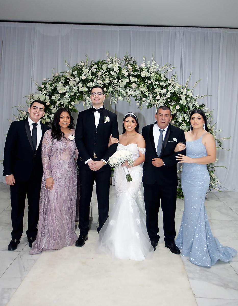 30 / 64Los novios son acompañados por sus padrinos de boda, Irma y Melvin Noriega.