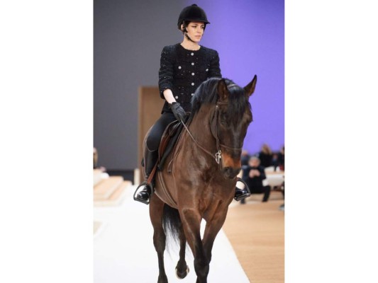 2 / 27Como parte del inicial del evento, Charlotte Casiraghi entró de una manera muy peculiar pero espectacular: montada en un caballo y vistiendo una chaqueta de tweed negra con botones enjoyados. -