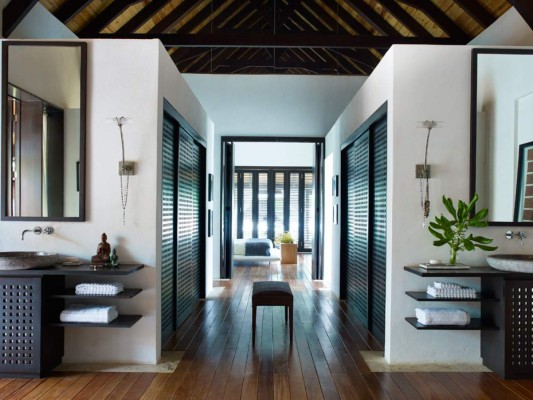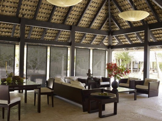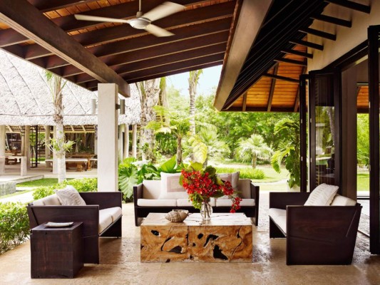 7 / 17El living de la casa está decorado con sofás de teca y una espectacular mesa de coctel de madera de bosque tropical diseñada por Designers Views -
