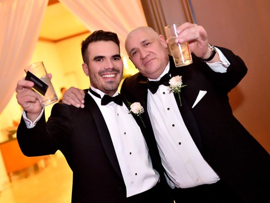Después de la ceremonia eclesiástica los recién casados junto a sus familiares y amigos se trasladaron al Hotel Marriot donde los esperaba una elegante recepción con una decoración impecable realizada por Trimero Events en el Salón la Concordia de dicho hotel el cual estuvo iluminado por cientos de velas y adornado con hermosos arreglos florales en tonos borgoña, crema y blanco.