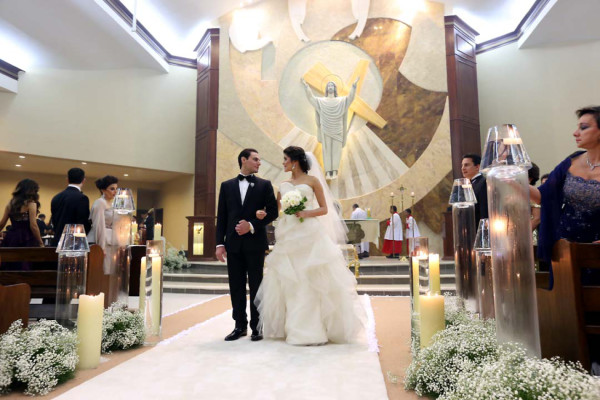 Una contagiosa atmósfera de felicidad se apoderó esa noche de la iglesia Sagrada Familia de la Fundación Mhotivo,que abrió sus puertas por primera vez para ser escenario del inolvidable enlace entre Natalie Pagels y Juan Carlos Canahuati. Con un vaporoso ajuar de Vera Wang, la novia desfiló radiante del brazo de su hermano Christian, quien la entregó al novio, que la esperaba frente a la imagen del Cristo Resucitado.