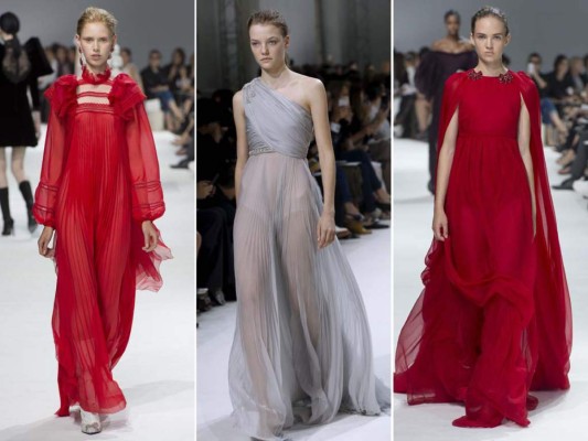 El italiano Giambattista Valli se inspiró en la película 'El arca rusa' (2002) para una suntuosa colección de trajes de cóctel y princesas en vestido de fiesta.