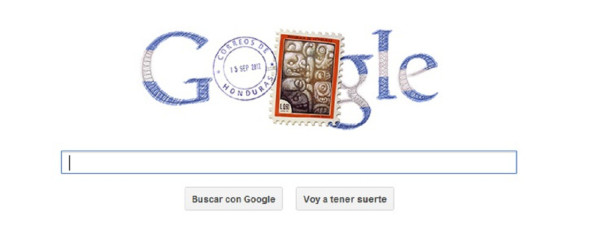 El doodle para Honduras consiste en el sello del Correo Nacional de Honduras y una estampilla con una estela maya, mientras que las letras de Google están pintadas en azul con efecto de lápiz de color.
