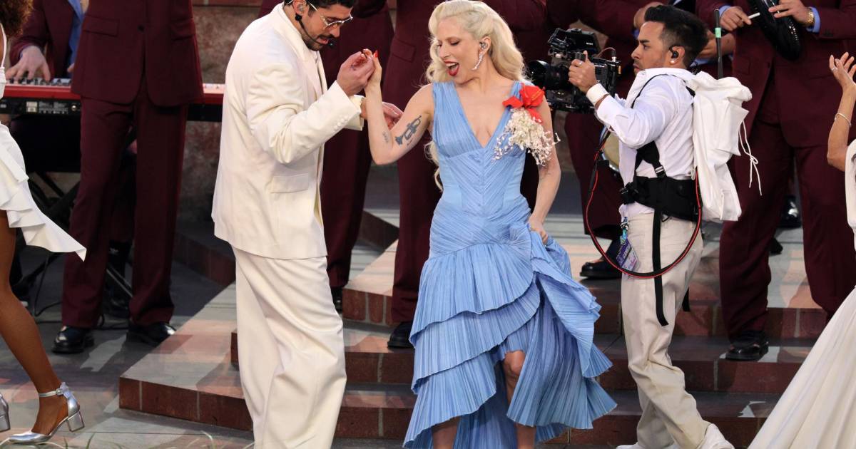 Con un vestido a medida de la firma dominicana Luar y con un ejemplar de la Flor de Maga puertorriqueña sobre uno de sus tirantes, así apareció y cantó Lady Gaga en el medio tiempo del Super Bowl, todo un gesto de apoyo a lo latino en la gran noche de Bad Bunny y de la defensa de los inmigrantes en Estados Unidos.