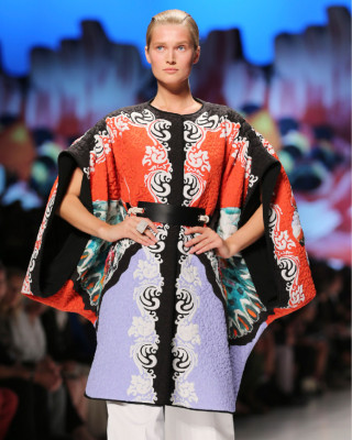 La casa de la moda se inspiró en las prendas exóticas del Medio Oriente en donde la combinación de blanco y negro en conjunto con tonos bright como el naranja, amarillo y azul hicieron la mezcla perfecta.