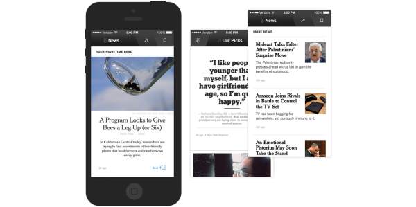 La aplicación de The New York Times, ofrece varios boletines informativos al día y una selección de los contenidos de la web del rotativo