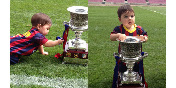 Ganar la Supercopa de España es la mejor excusa para realizar una sesión de fotos familiar en el Camp Nou con el pequeño Milan como protagonista. Luciendo su camiseta personalizada del Barça, el pequeño se encontraba como pez en el agua con la copa entre las manos.