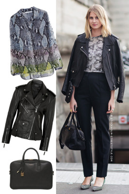 Snake skin shirt y leather jacket